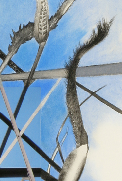 Kohle-/Pastellzeichnung und Digitalprint auf