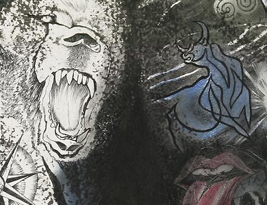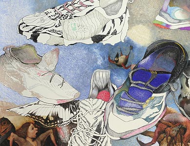 Kohle-/Pastellzeichnung und Digitalprint auf